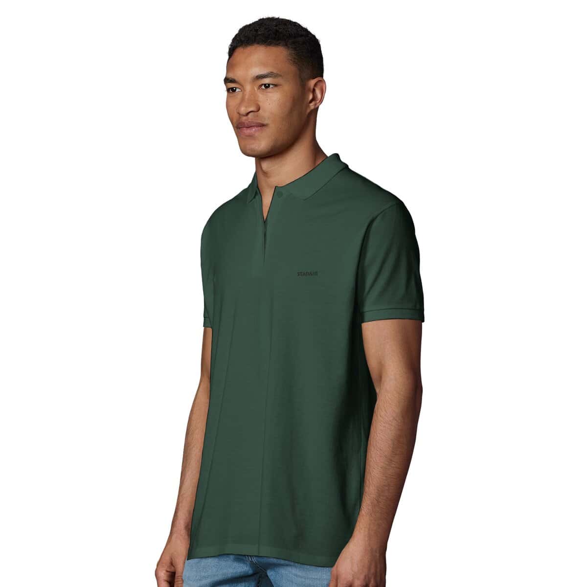 Mit geripptem Kragen, verstärkter Knopfleiste und kurzen Ärmeln bietet es langanhaltenden Komfort für den Alltag.